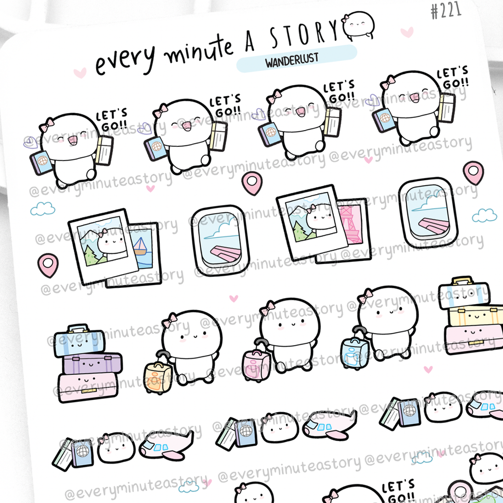 Wanderlust, travel Beanie stickers, hobonichi weeks cousin stickers, mambi the happy planner, erin condren, kikkik, filofax travellers notebook, bullet journal