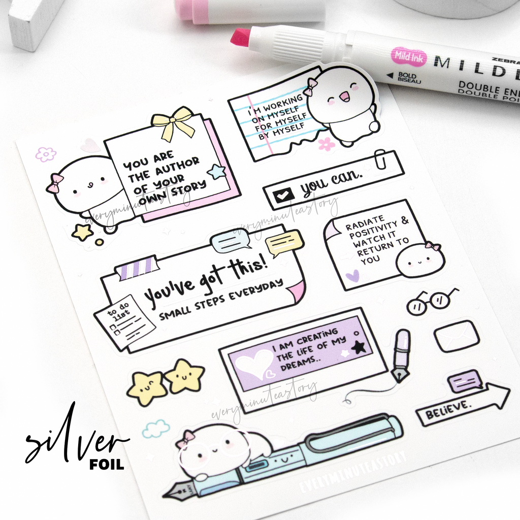 Motivational big stickers Vol.5, silver foil, mental health, hobonichi cousin, mambi the happy planner, erin condren, kikkik, filofax travellers notebook, bullet journal
