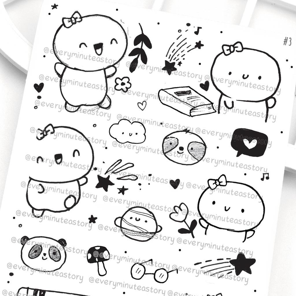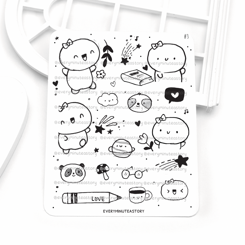 - Hand drawn kiss cut stickers. They are ready to peel and stick.