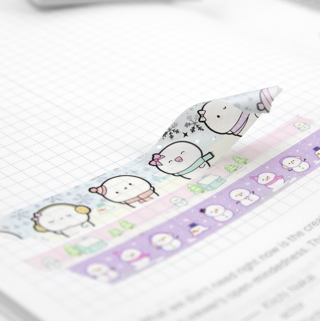 Let it snow, Beanie washi set of 3, silver foil