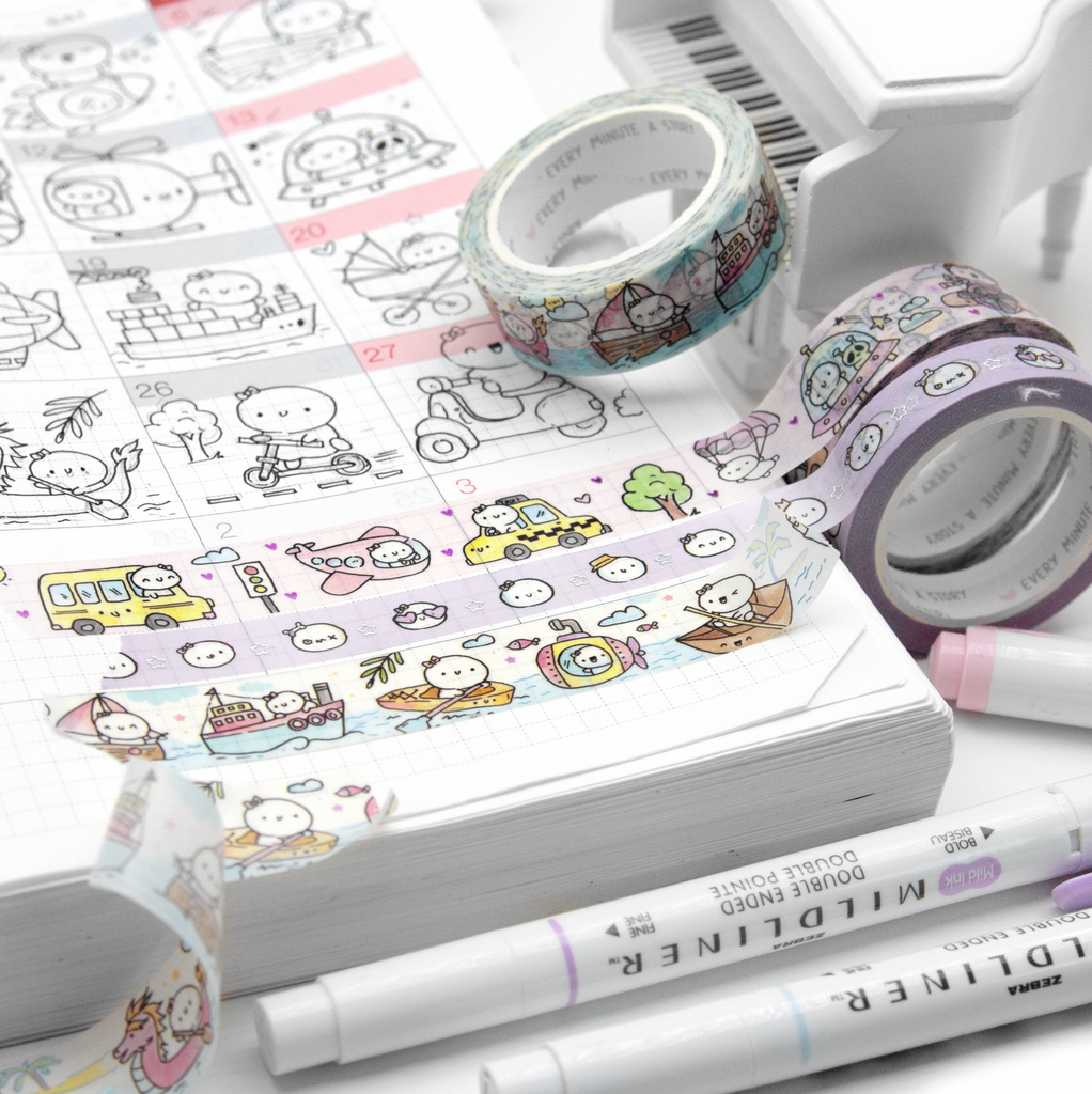 Beanie on Wheels inktober washi, hand sketched - Limited stock, Limit 2/order