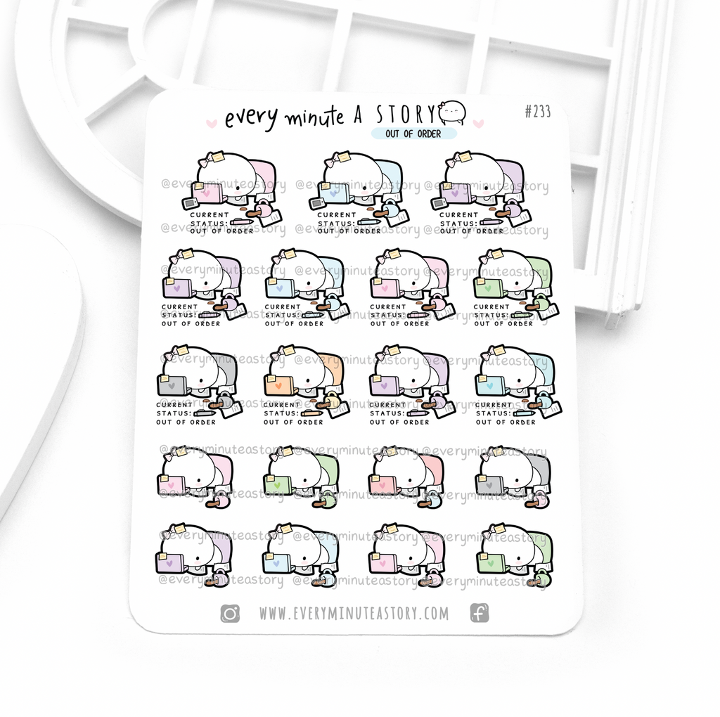 Out of order Beanie stickers, tired, overworked, exhausted, planner stickers, hobonichi cousin weeks, mambi the happy planner, erin condren, kikkik, filofax travellers notebook, bullet journal