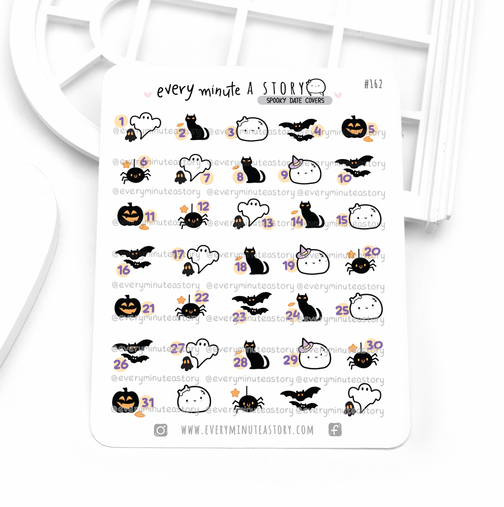 Spooky date covers, halloween, fall, planner stickers, hobonichi cousin weeks, mambi the happy planner, erin condren, kikkik, filofax travellers notebook, bullet journal