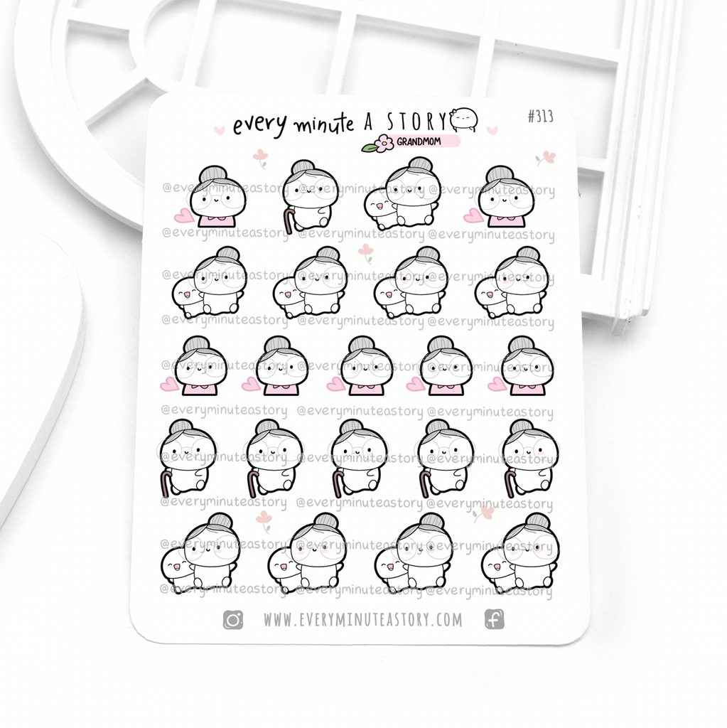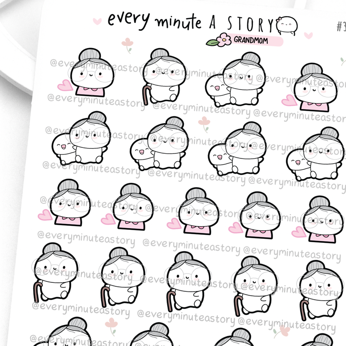 Grandma, grandmother, nonna Beanie stickers, hobonichi cousin weeks, mambi the happy planner, erin condren, kikkik, filofax travellers notebook, bullet journal
