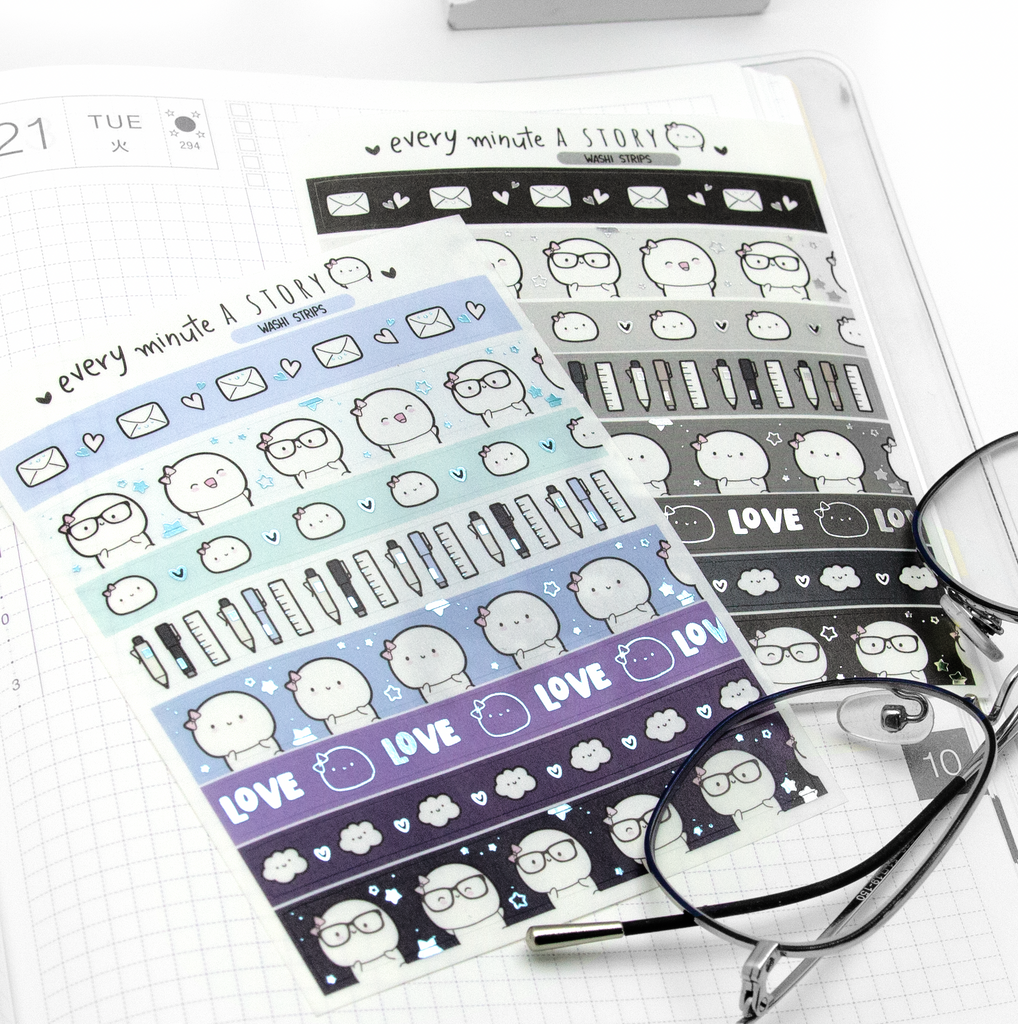 Nerdy Beanie washi strips on washi paper, blue/silver foiled -Limited Stock!