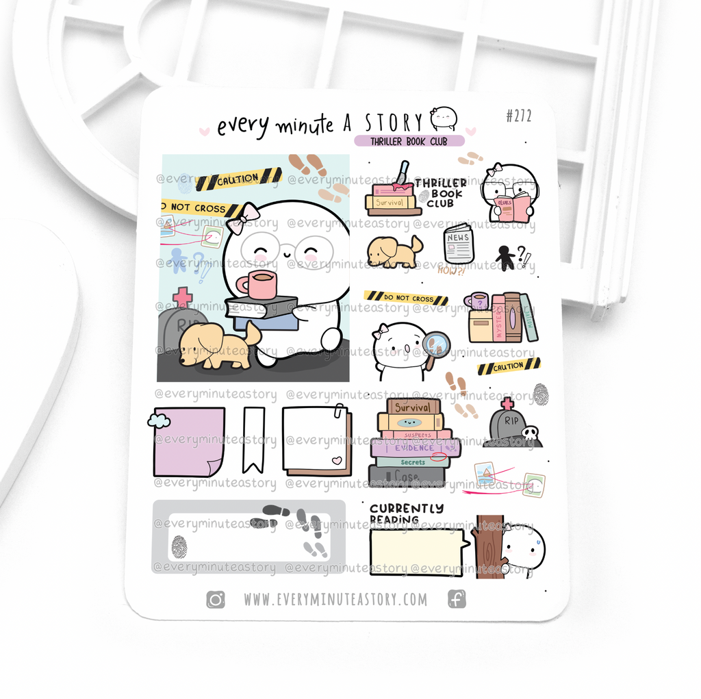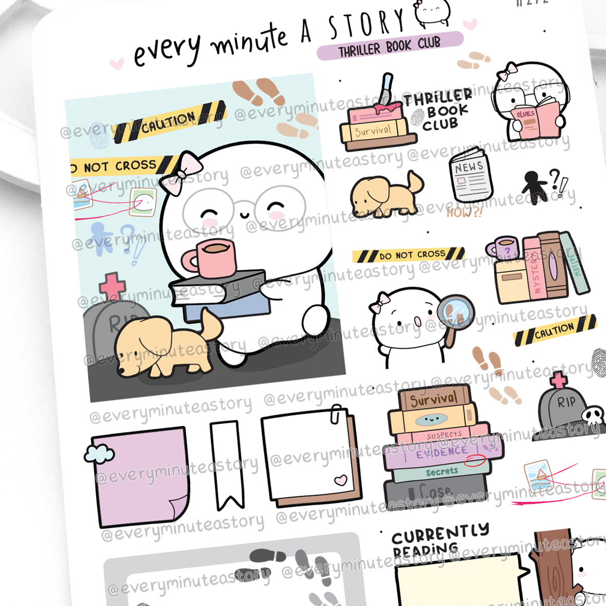 Thriller book club stickers, crime book genre stickers, hobonichi cousin weeks, mambi the happy planner, erin condren, kikkik, filofax travellers notebook, bullet journal